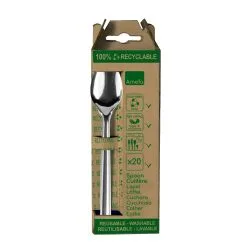 De 20-delige set tafellepels van Amefa in de serie Leaves is een duurzaam alternatief voor plastic en ander wegwerpbestek. Proactief ontworpen door Amefa, anticiperend op de Europese wetgeving om “single use plastics” uit onze samenleving te verbannen. Leaves is licht en dun maar voelt, eet en ziet eruit als gewoon bestek. Het ontwerp heeft een gebogen, glanzende handgreep die is geoptimaliseerd om het te kunnen stapelen. Omdat het bestek is gemaakt van roestvrijstaal, is het volledig recyclebaar, vaatwasmachinebestendig en geschikt voor veelvoudig gebruik.