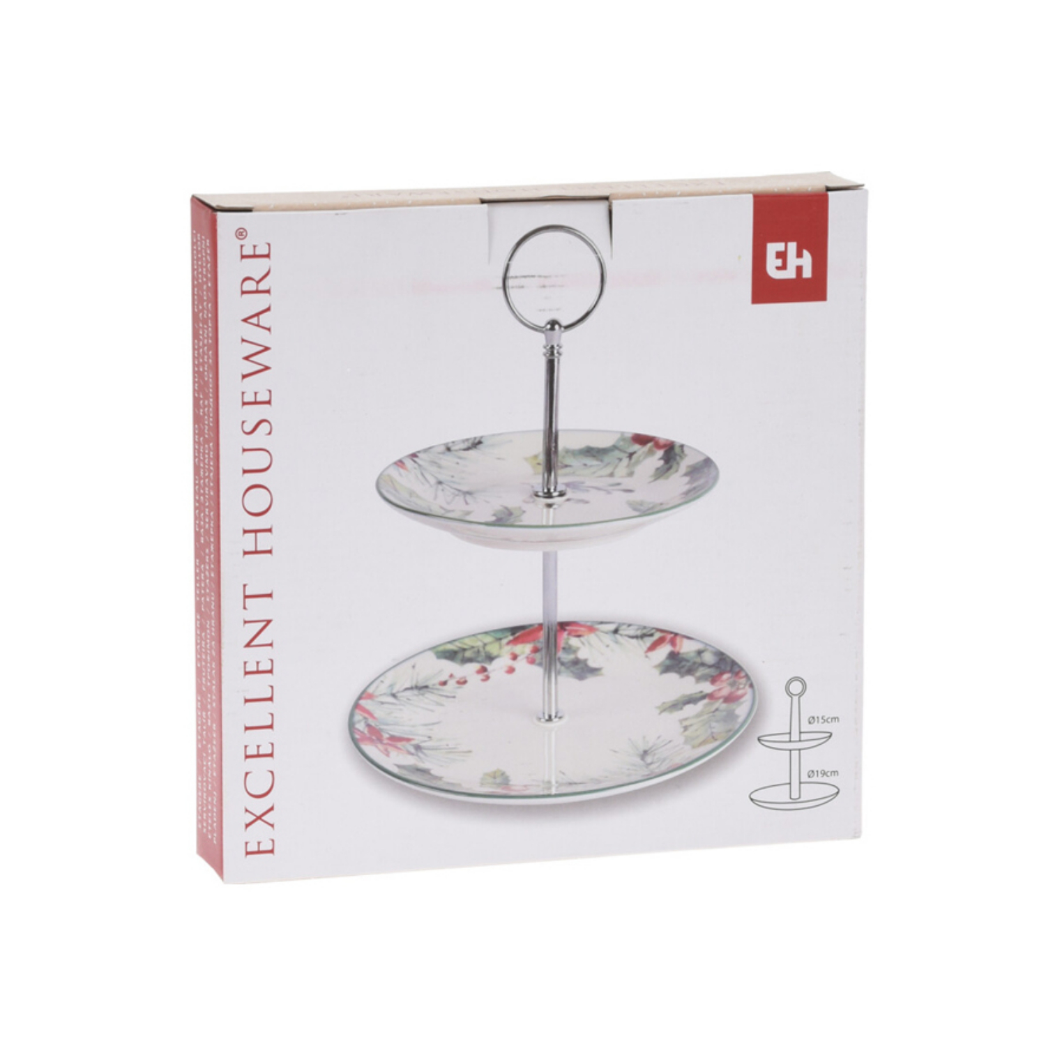 Presenteer chocolaatjes, bonbons en andere lekkernijen met de Excellent Houseware etagere 2-laags. De etagere is gemaakt van porselein en er zijn twee varianten beschikbaar. Een rode variant en een groene variant.