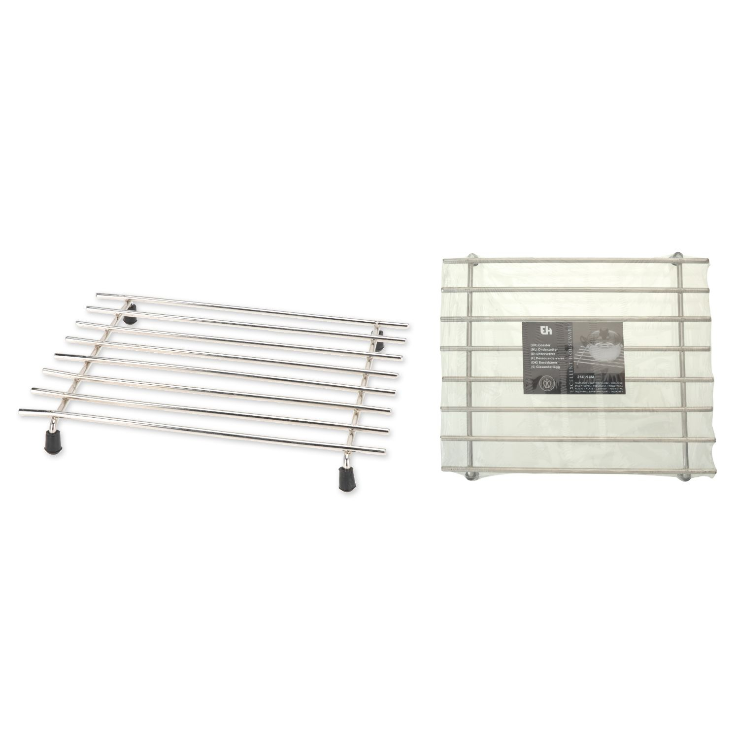 Plaats zodra het eten klaar is de pannen op een Excellent Housware pannenonderzetter en geniet van de maaltijd. De onderzetter is gemaakt van RVS en gaat lang mee en is goed schoon te houden. Afmeting: 24 x 19 cm.