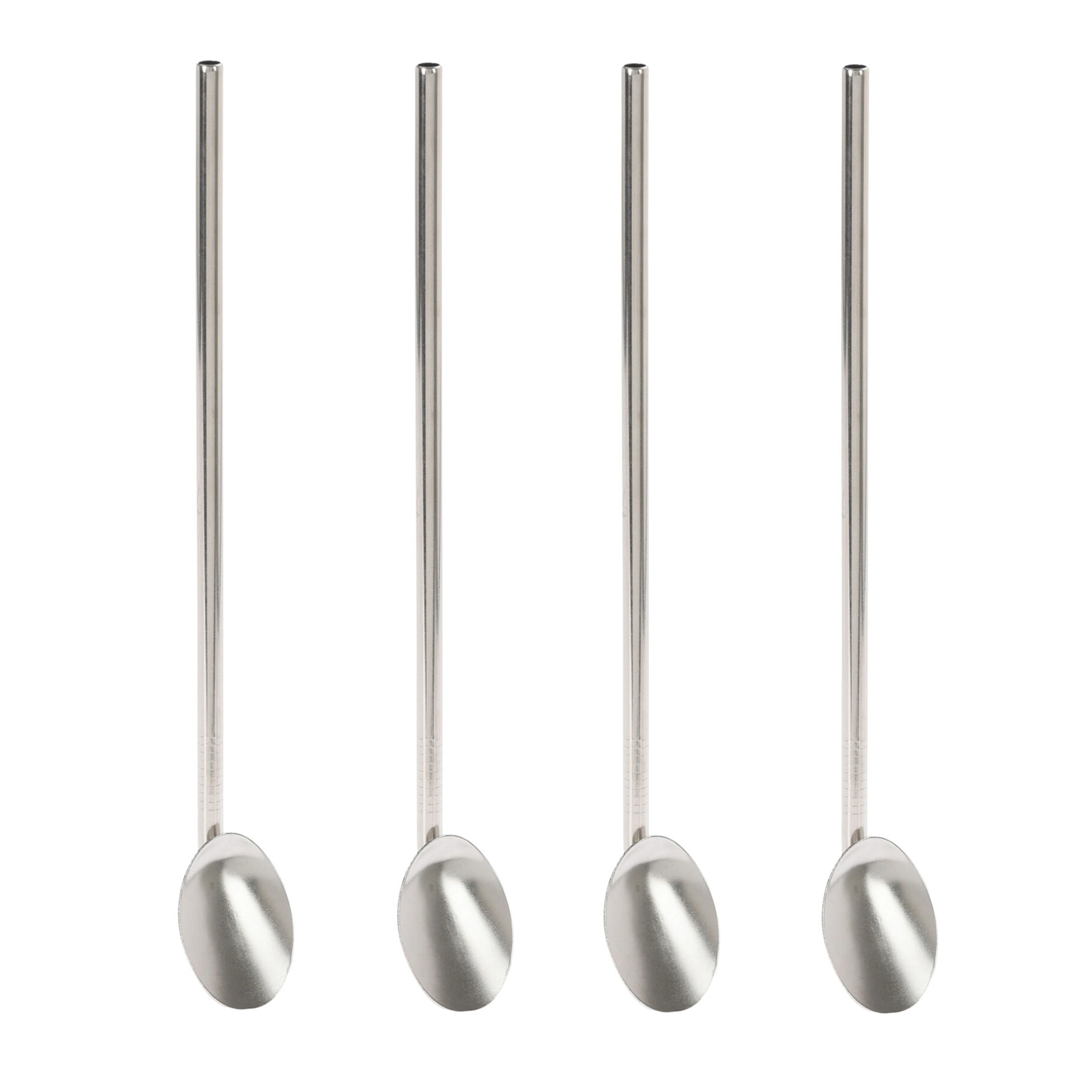 Excellent Houseware RVS Rietjes Met Lepel 4 Stuks + Schoonmaakborstel