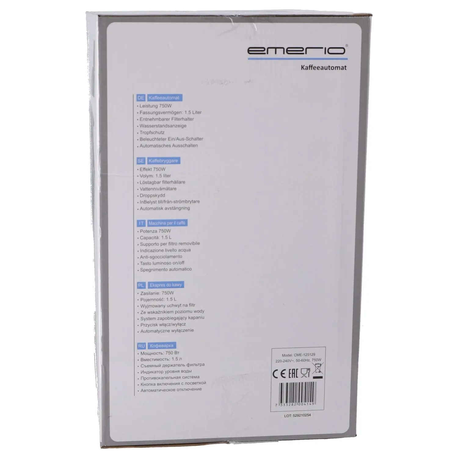 Het Emerio CME-122933 Koffiezetapparaat is het perfecte apparaat voor een lekkere kop filterkoffie en je zet net zoveel koffie als je nodig hebt. Met een inhoud van 1.5 liter zet je 12-15 kopjes koffie tegelijkertijd. Dankzij het stijlvolle ontwerp staat het apparaat bovendien mooi in de keuken. De warmhoudfunctie zorgt ervoor dat de koffie heet blijft als je deze nog even wilt bewaren voor een tweede kopje. Het koffiezetapparaat is voorzien van een uitneembaar permanent filter die je gemakkelijk kunt schoonmaken, waardoor het gebruik van papieren koffiefilters niet nodig is. Beschikt over automatische uitschakeling. Dankzij de druppelstop loopt de koffie niet door als u de kan verwijdert.