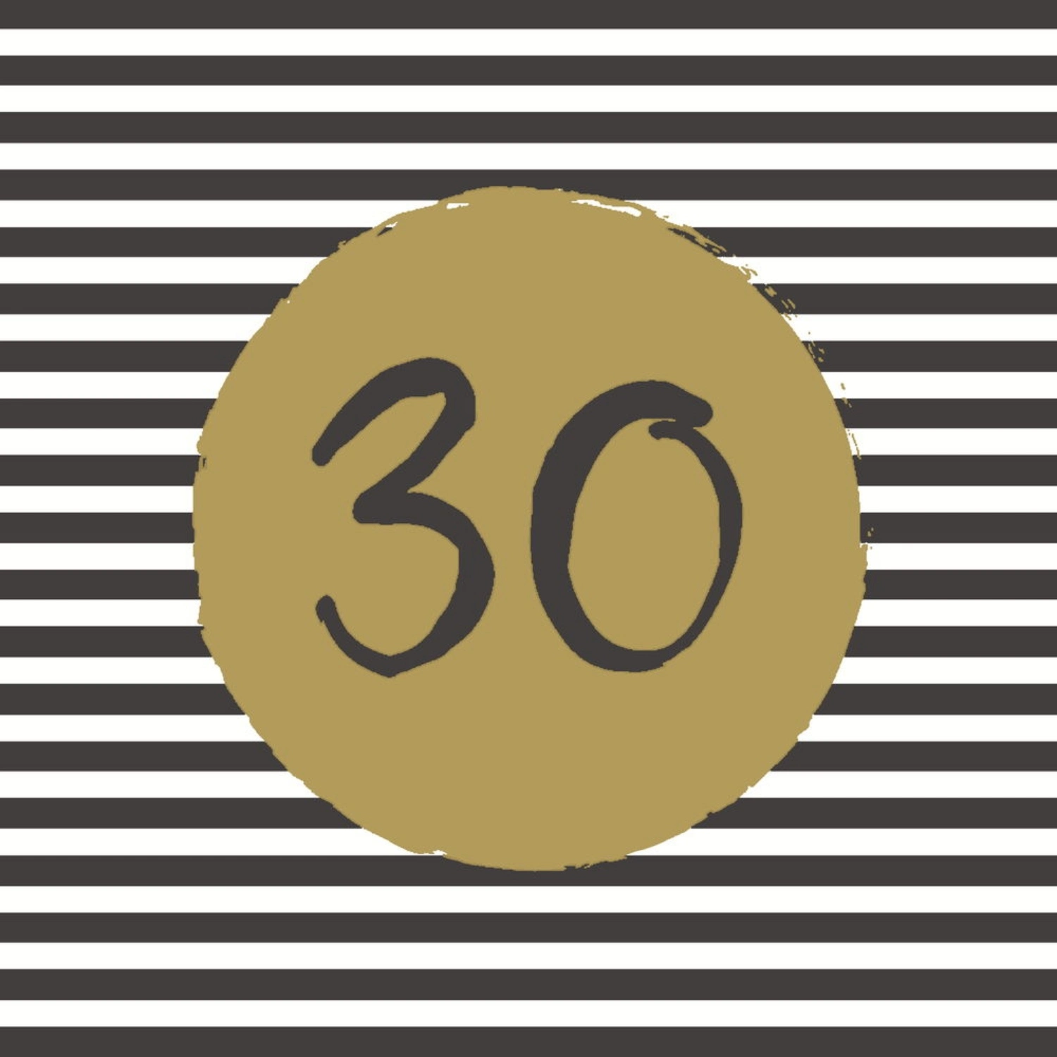 Servetten zijn een uitstekende manier om jouw eettafel net een beetje extra stijl mee te geven! Met deze Duni servetten, zwart-wit met het getal 30 in een gouden cirkel, maak jij jouw gedekte tafel helemaal af! De servetten zijn gemaakt van 3-laags tissuepapier en hebben een formaat van 33cm. De verpakking bevat 20 servetten, zodat jij genoeg hebt voor iedereen!