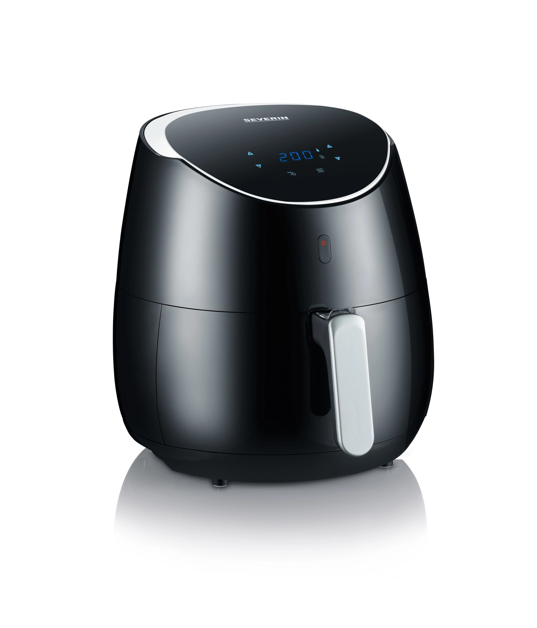 De zwarte ceramic Air Fryer van Severin zorgt voor een veelzijdige, gezonde en snelle bereiding zonder extra olie of vet. In de XXL-frituurmand met extra grote inhoud van ca. 5 liter is perfect voor de bereiding van grotere porties tot bijvoorbeeld 1,5 kg patat of zelfs een hele kip. De air fryer heeft 8 automatische programma’s voor de beste resultaten voor friet, vlees, kip, garnalen, groenten, vis en nog veel meer. De air fryer heeft een handig geheugenfunctie voor alle automatische programma’s en individuele instellingen. Individueel programmeerbare temperatuur en tijdinstelling, een