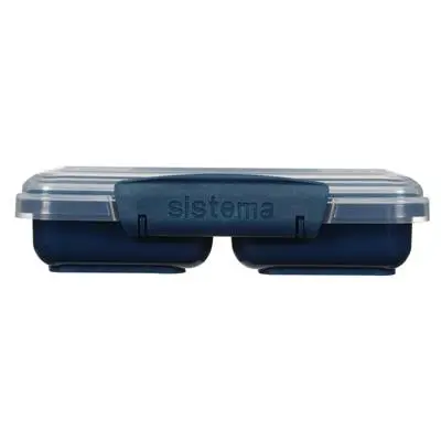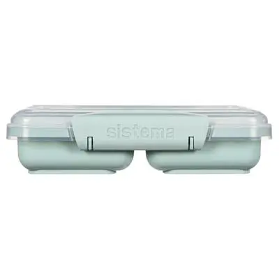 Sistema Renew voorraaddoos met 2 compartimenten van Sistema is ideaal voor snacks on the go en voorzien van een splitsing waardoor je twee verschillende soorten inhoud kunt bewaren. Met de easy-locking clips en de flexibele sluiting blijft het voedsel langer vers. De snackdoos is vaatwasmachinebestendig en mag in de koelkast, diepvries en magnetron (zonder deksel). Inhoud: 350ml