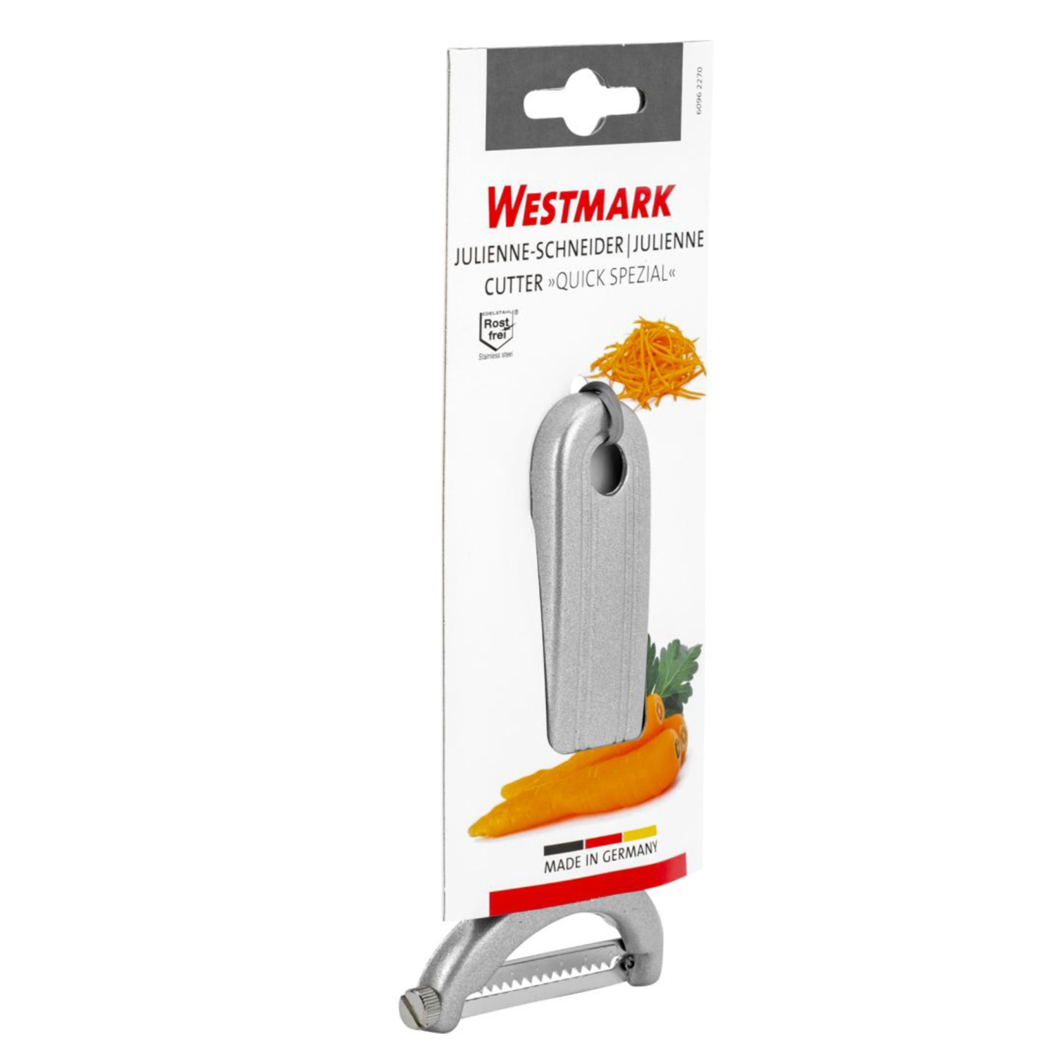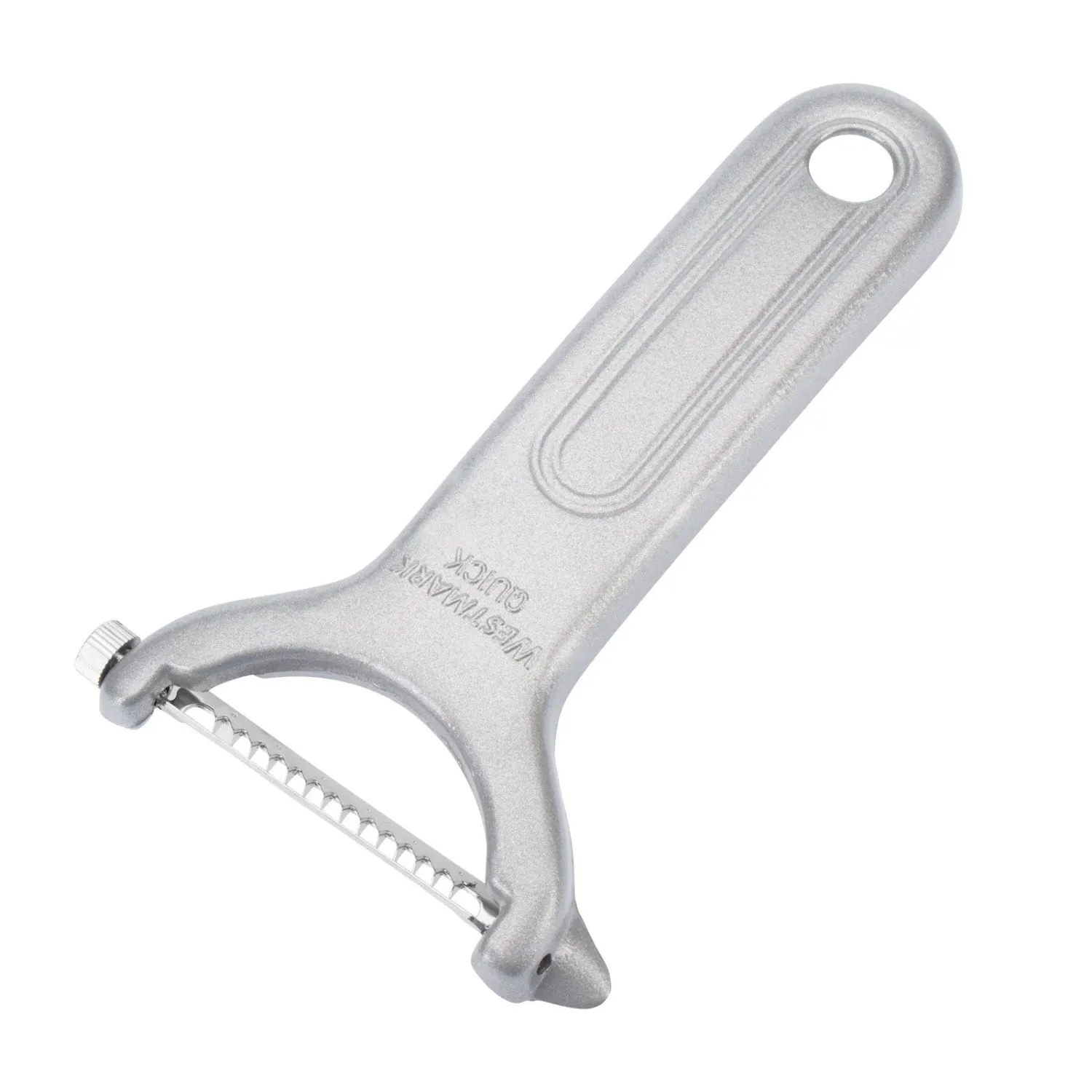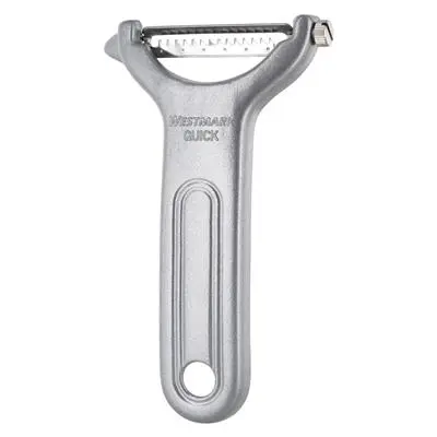 Deze Westmark dunschiller is perfect voor het snijden van fijne groentereepjes, bijvoorbeeld voor het decoreren van soepen of het bereiden van wokmaaltijden. Dankzij het beweegbare roestvrijstalen mes past het zich perfect aan alle contouren aan. De uitsteker helpt bij het verwijderen van beschadigde plekken en lelijke vlekken. De dunschiller is geschikt voor zowel rechts- als linkshandigen en kan dankzij de ophanglus ruimtebesparend worden opgeborgen.