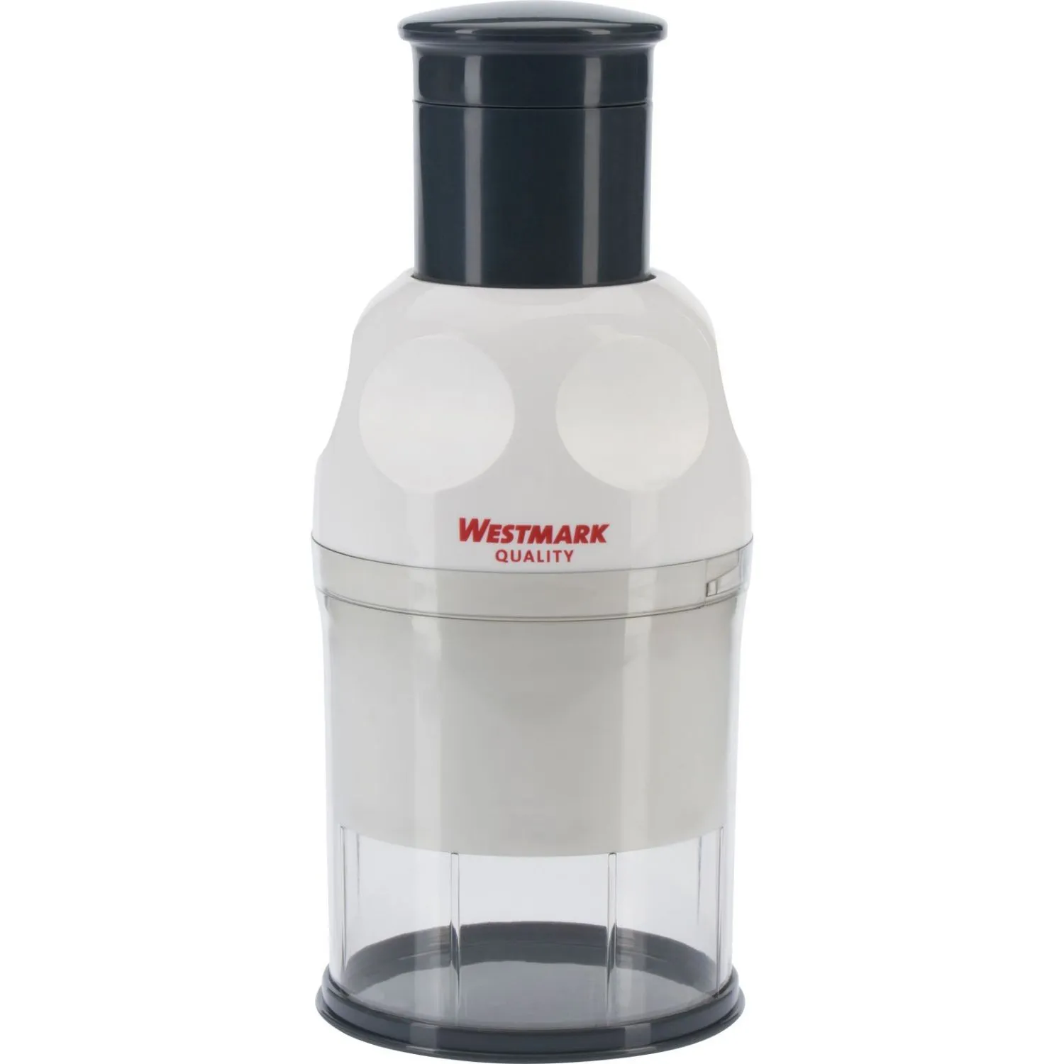 Deze universele hakmolen van Westmark is ideaal voor het hakken van uien, groenten, wortelen, noten enzovoorts. Met automatisch keermechanisme en gepolijste roestvrijstalen messen. Door het extra deksel verandert de hakcontainer in een luchtdichte voorraadpot. Het heeft een ruimtebesparende opslag dankzij de vergrendeling voor de drukzuiger.
