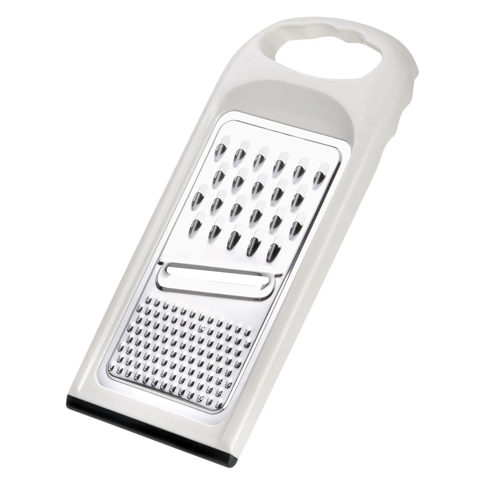Met deze hoogwaardige universele rasp van Westmark kun je moeiteloos en snel fruit, groenten, noten, harde kaas, chocolade en nog veel meer raspen. De scherpe roestvrijstalen messen zorgen voor een perfect raspresultaat met weinig inspanning. De variant met 3 bladen op een raspbord geven je een fijne rasp, een grove rasp en een snijmachine.
